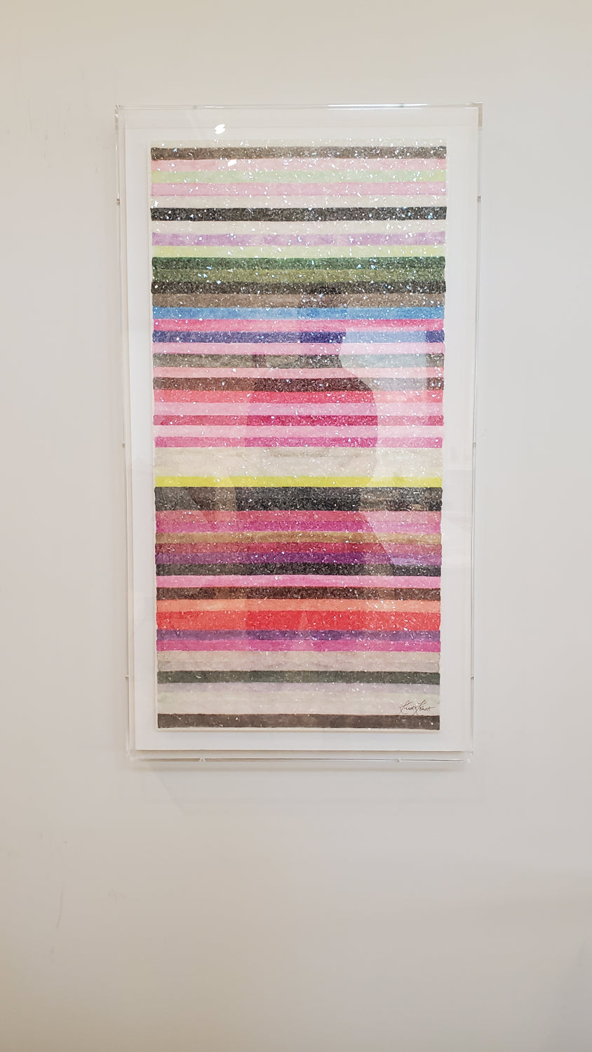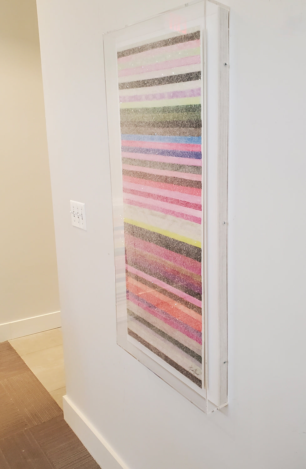 This gorgeous print is part of the Chromatic Stripes series, one of Kristi’s original creations. There’s just something about these explorations in color that never gets old. Organic lines made from acrylic, ink, watercolor, and pastel appear to subtly vibrate—emitting a positive frequency that radiates through the home.