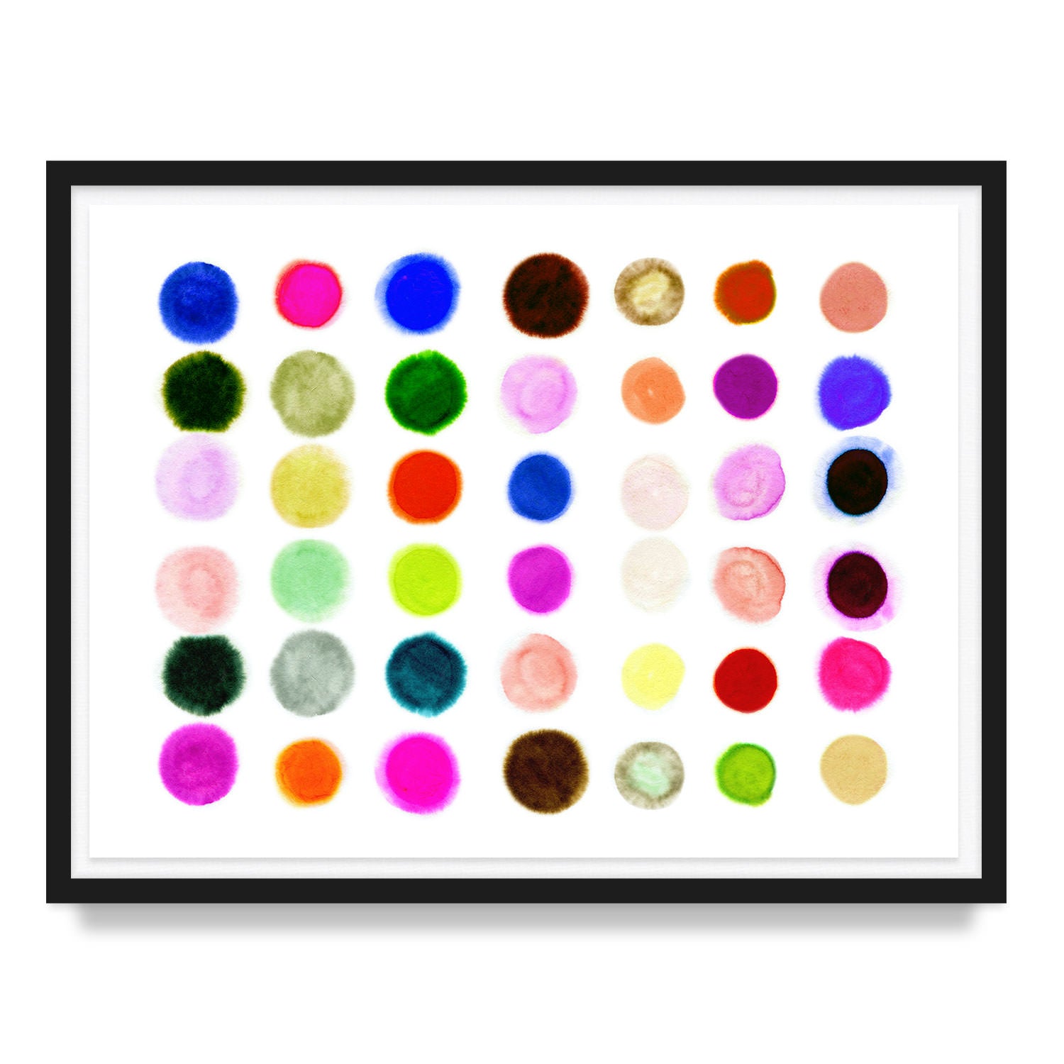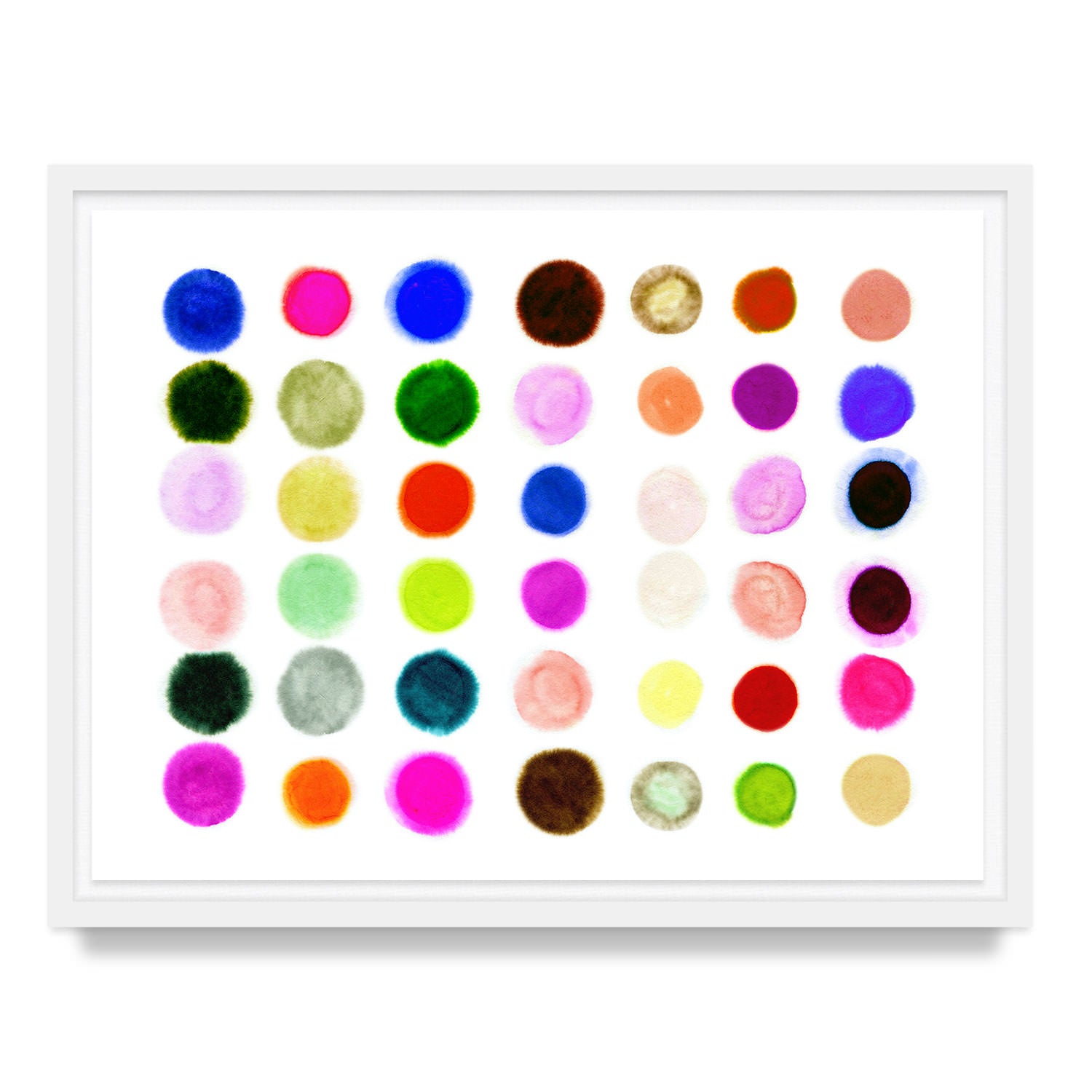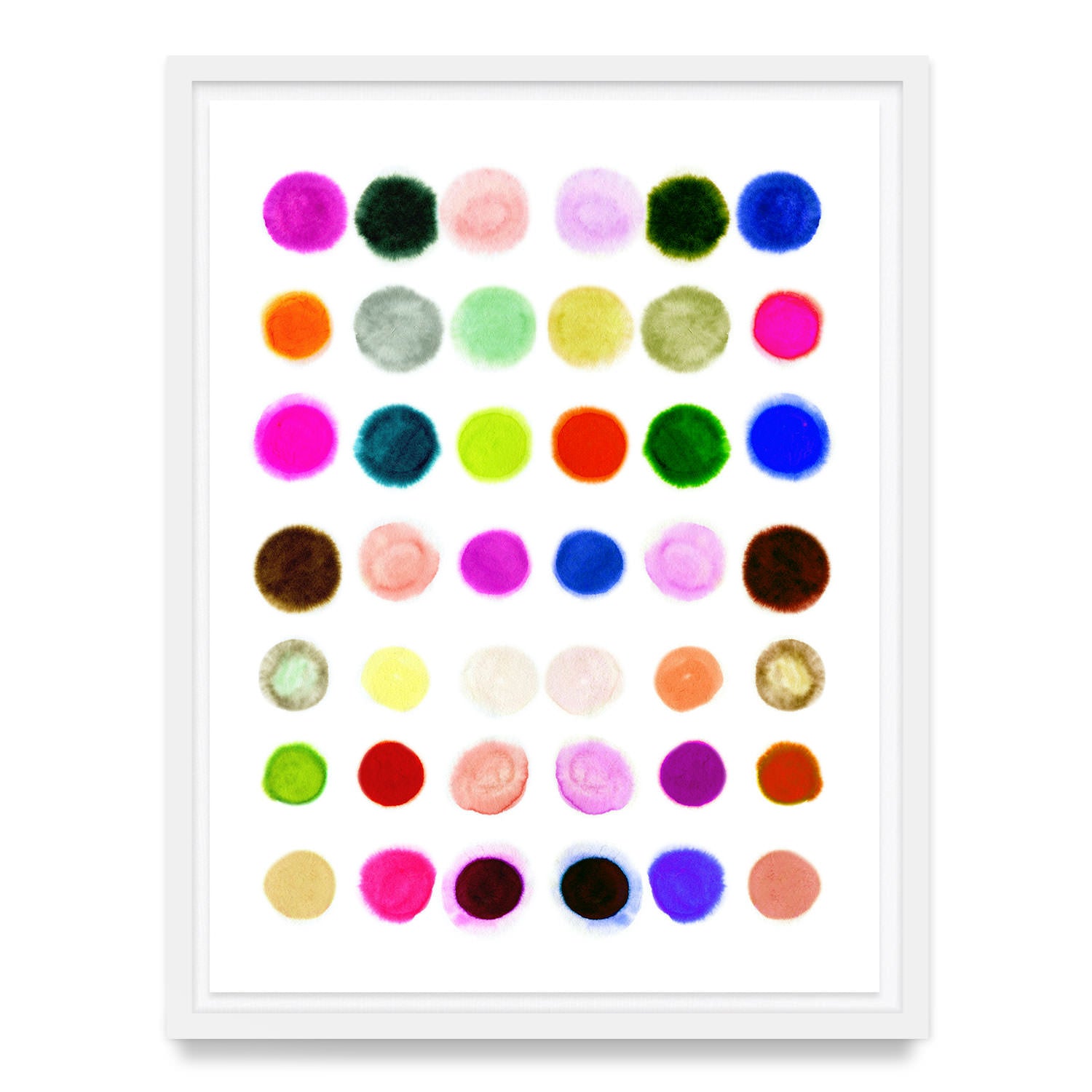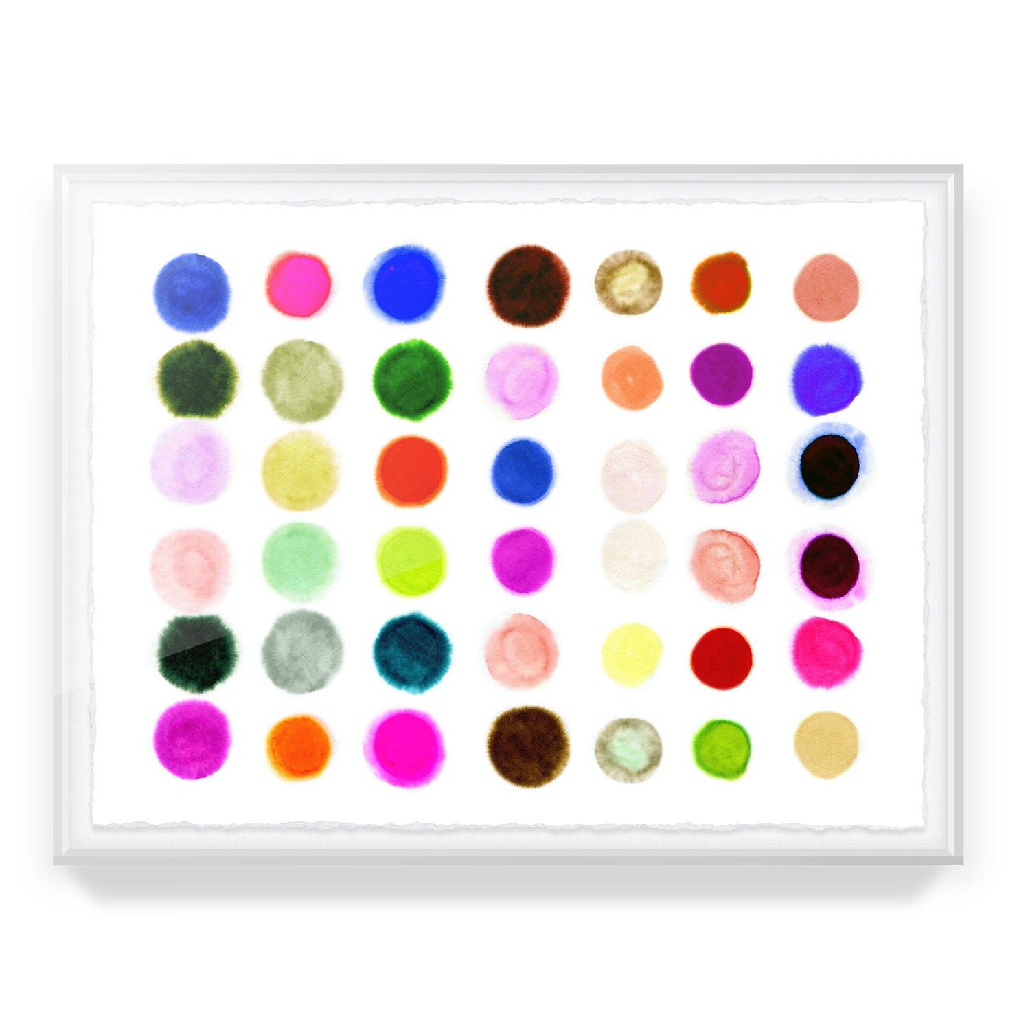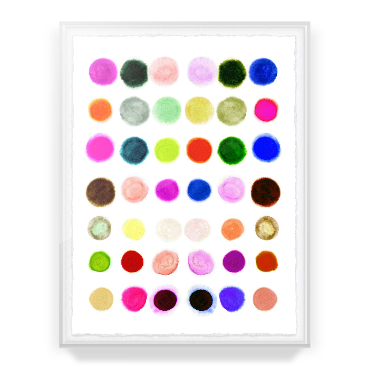 Nature and her hypnotic, colorful patterns were once again our muse for this spellbinding print from our Dots/Marks series. The repetition of dots on a butterfly’s wings, the Rorschach-like reflection on a beetle’s back, the clusters of cells in a flower’s stem...it’s all captivating beauty, translated into equally captivating art made of acrylic, ink, and pastel.