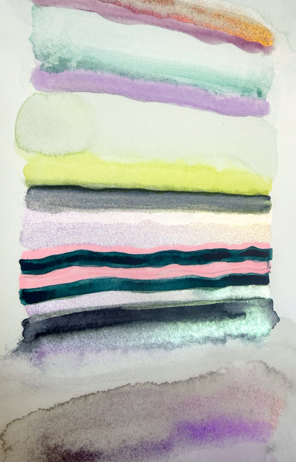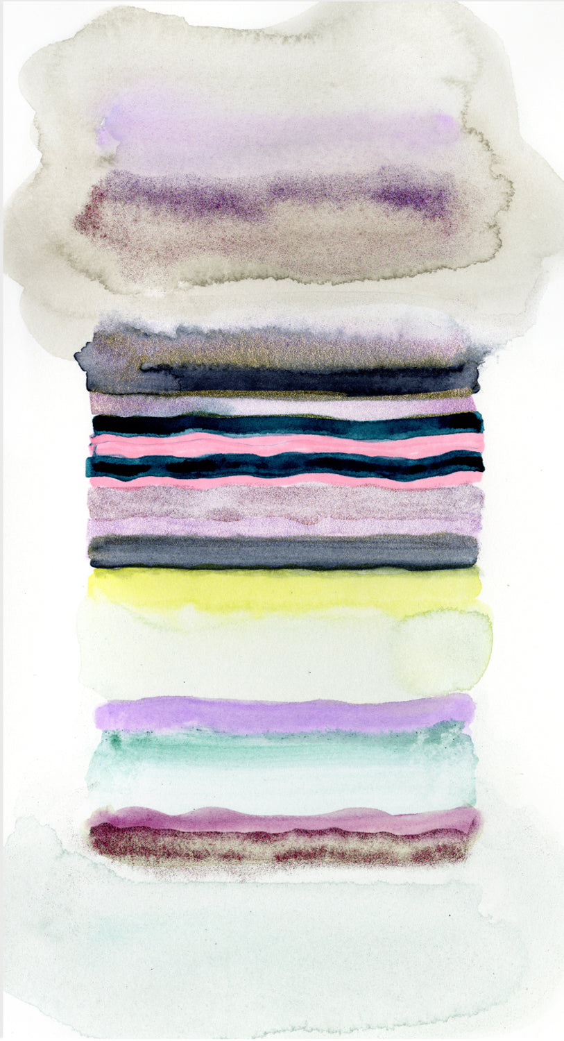 One of Kristi’s most popular series, Chromatic Harmony brings unexpected color combinations together in ways that simply make you smile. Neons juxtapose with faded neutrals; shimmering pastels provide a counterpoint to primaries; darker tones live alongside the saturated.
