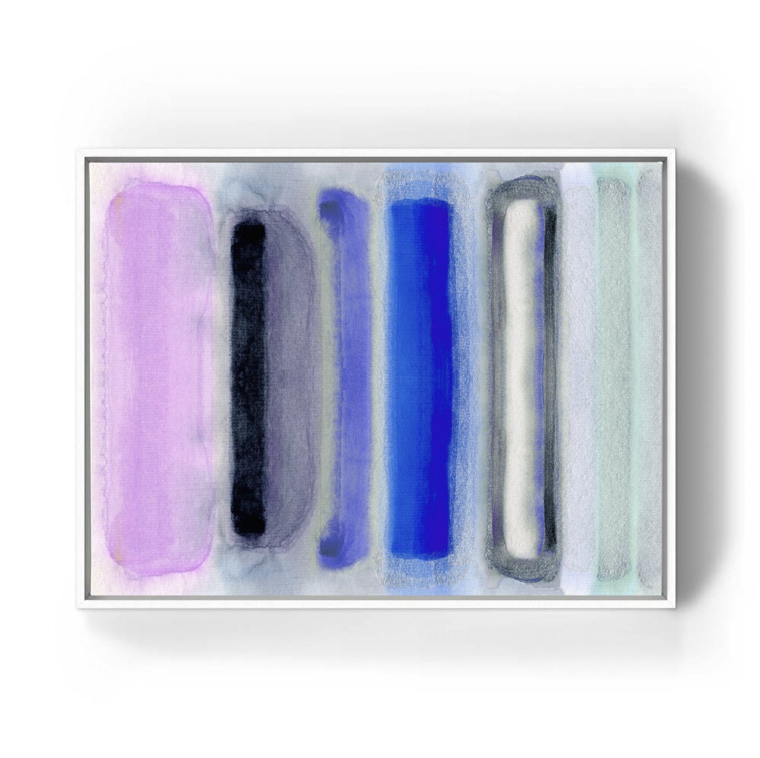 - Custom framed in luxe, white wood canvas float frame